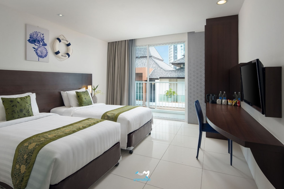 Deluxe Room Balcony มากับเตียงเดี่ยว 2 เตียงเช่นกัน ห้องตกแต่งขาว ๆ คลีน ๆ ที่สำคัญของห้องนี้นั้นคือมีระเบียงให้ได้ออกไปรับรรยากาศดี ๆ ของที่พัก