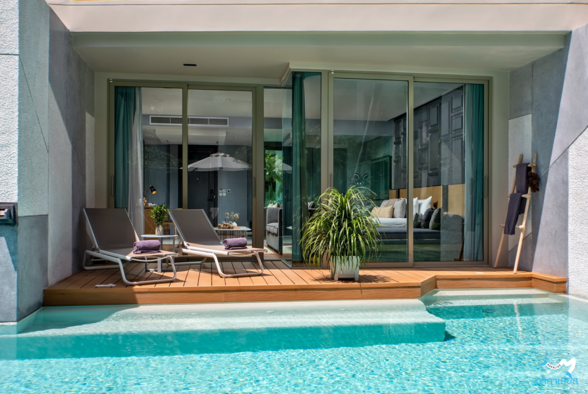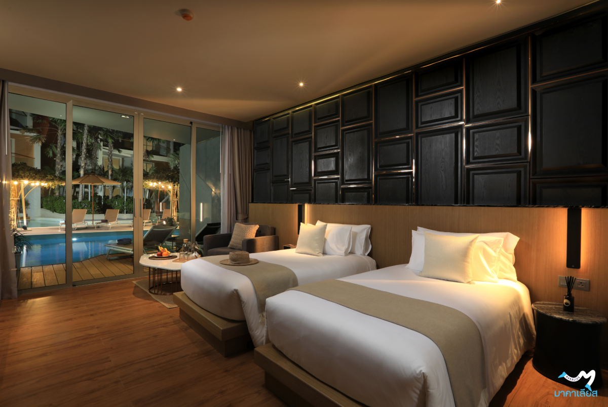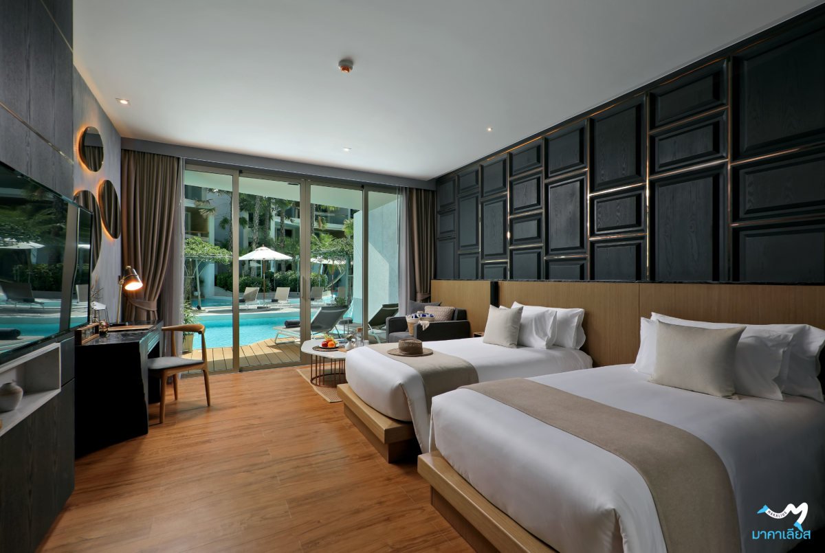 ห้อง Deluxe Pool Access ตกแต่งได้หรูหรา เตียงนุ่ม แถมสิ่งอำนวยความสะดวกครบครัน เปิดประตูสามารถลงสระได้เลย ถ่ายรูปก็เก๋สุดๆ ออกมานั่งชมวิวสระได้ชิลๆเลยน้า