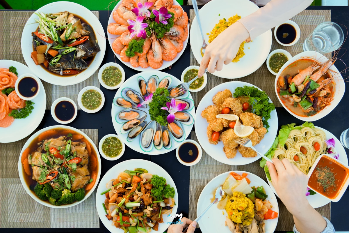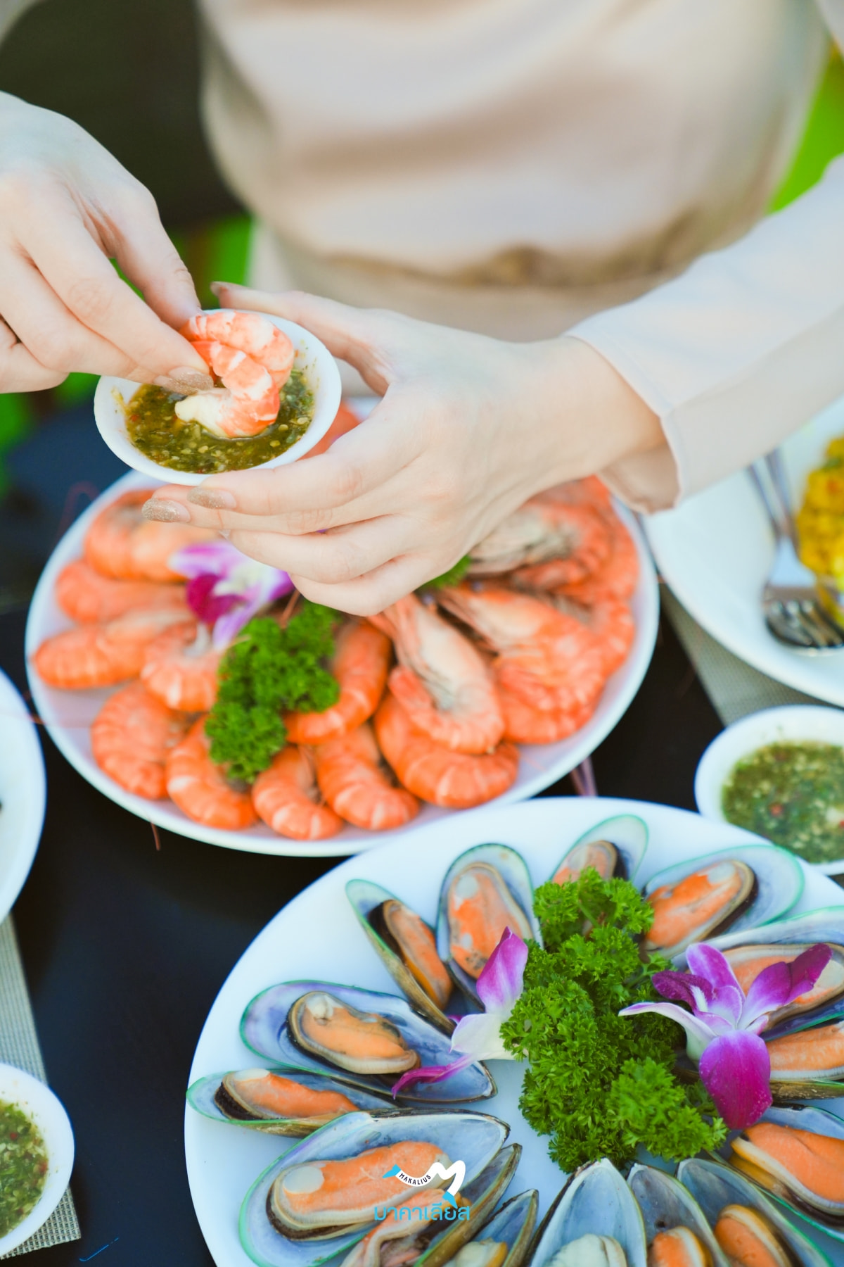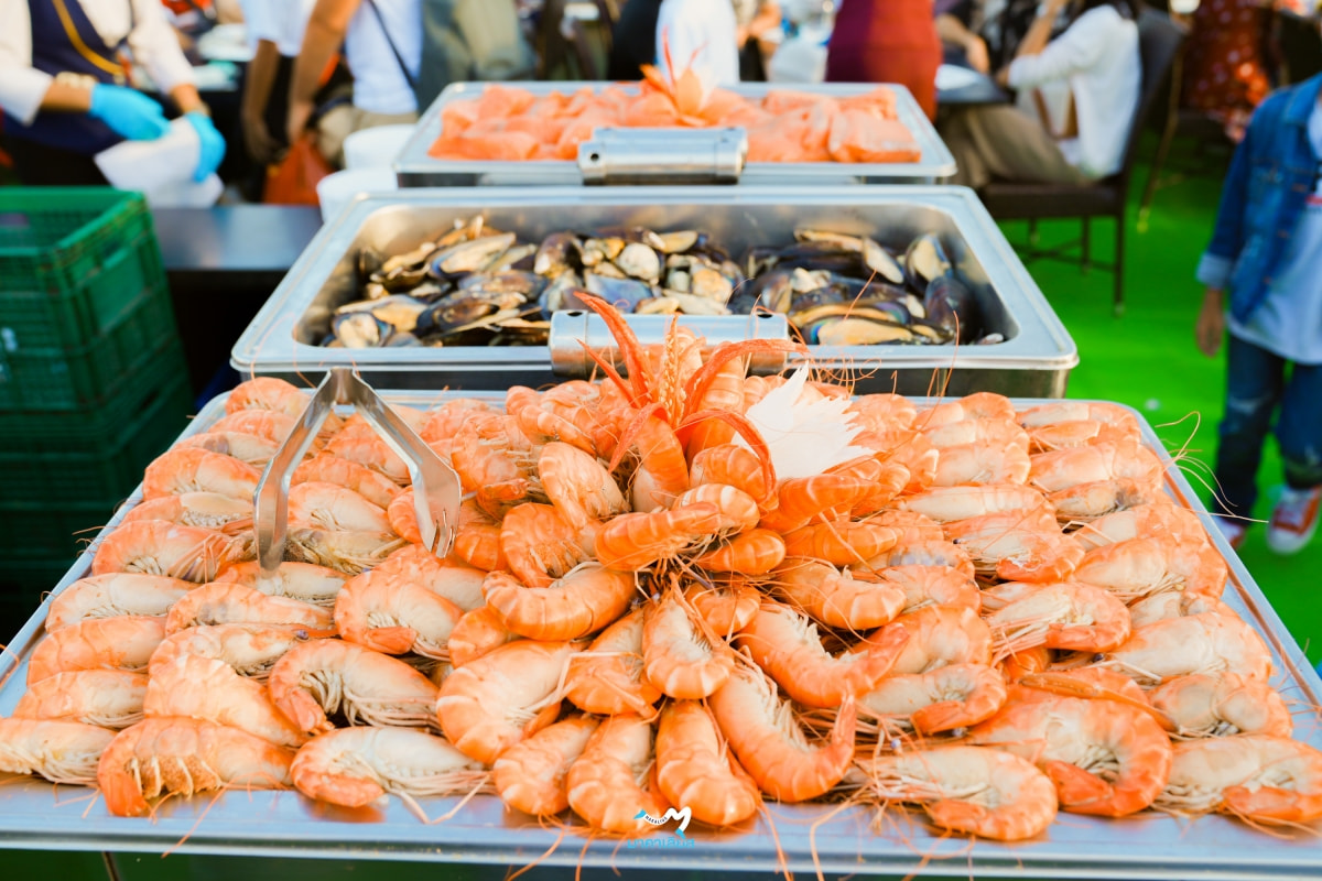เมนูอาหารอินเตอร์หลากหลาย ซีฟู้ด และของหวานมีให้เลือกทานเยอะมาก ตักได้ไม่อั้น ไม่มีขาด ของที่นี่สดเวอร์