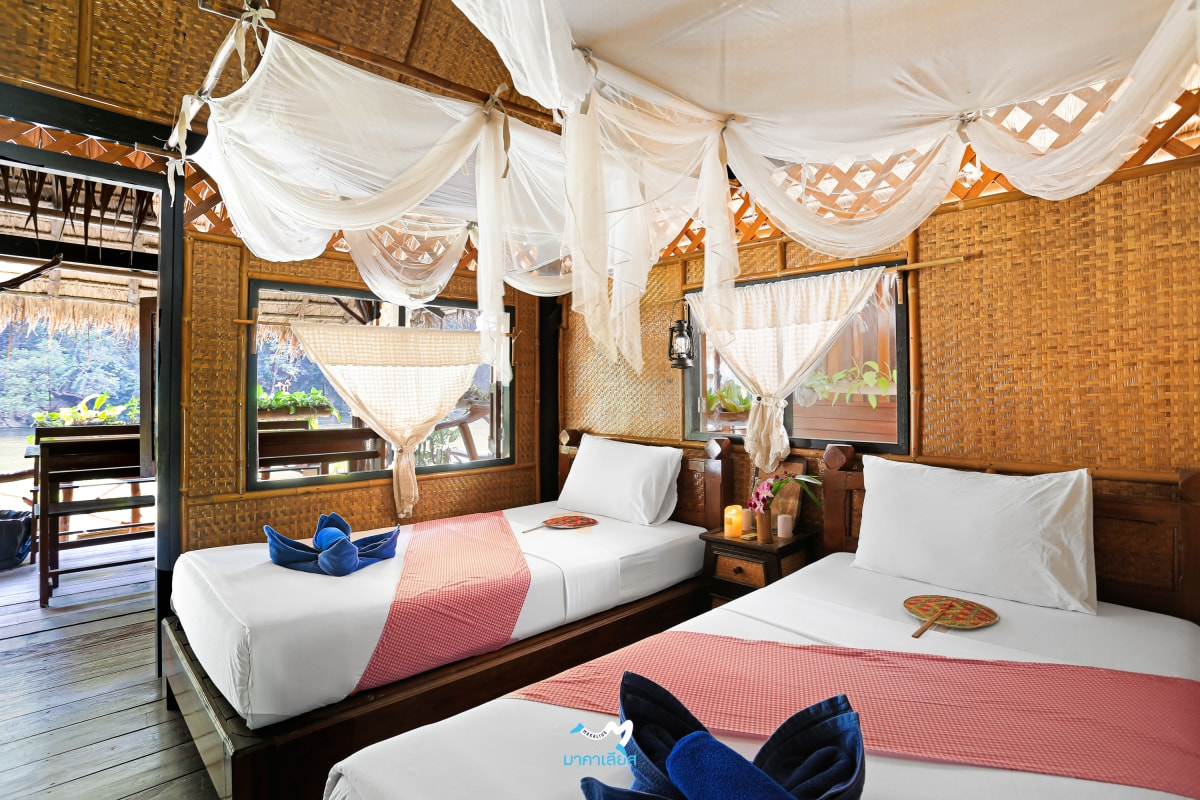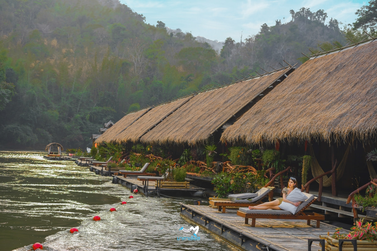 มาพักผ่อนสัมผัสธรรมชาติแบบชิลๆ นอนแพธรรมชาติริมแม่น้ำแคว บรรยากาศดีมาก เพราะที่นี่เรียกได้ว่ามา Social Detox ได้เลย ที่นี่เขาจะไม่ใช้ไฟฟ้าและสัญญาณโทรศัพท์ โดยจะมีตะเกียงน้ำมันก๊าด และตะเกียง LED ให้ในห้องพัก มาสัมผัสประสบการณ์ใหม่ๆ กันที่นี่เลย กระโดดน้ำลอยคอไหลไปตามน้ำได้สนุกทั้งวัน เย็นสบาย ใส่ชูชีพปลอดภัยหายห่วง