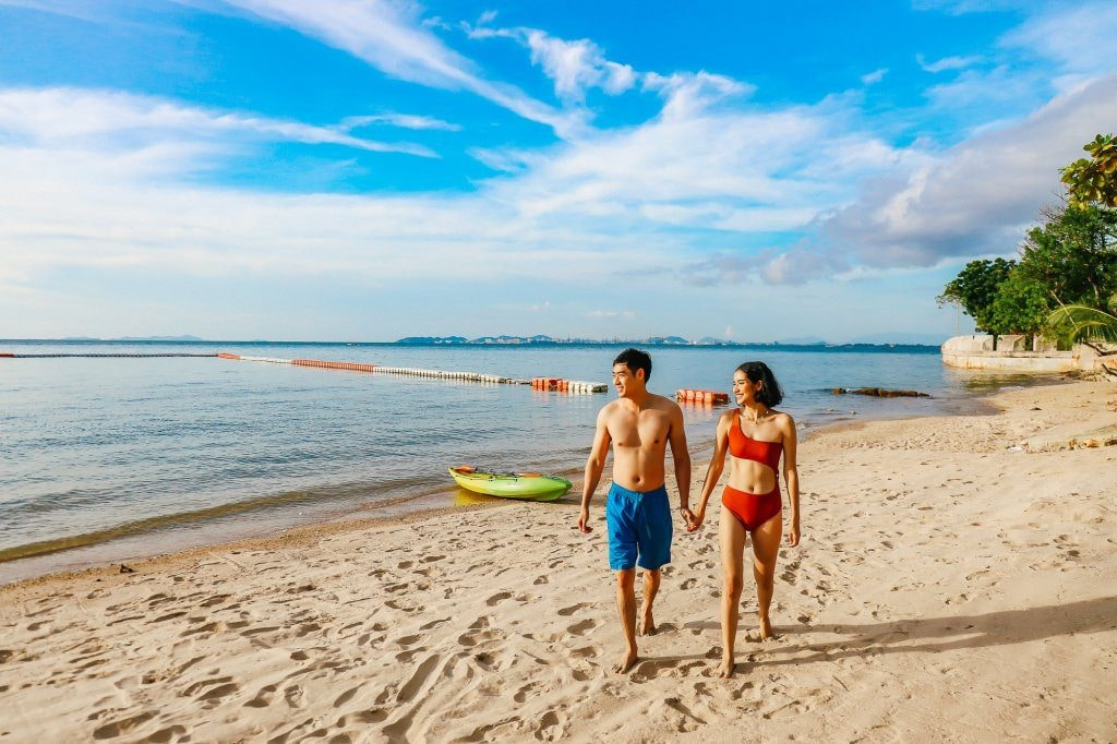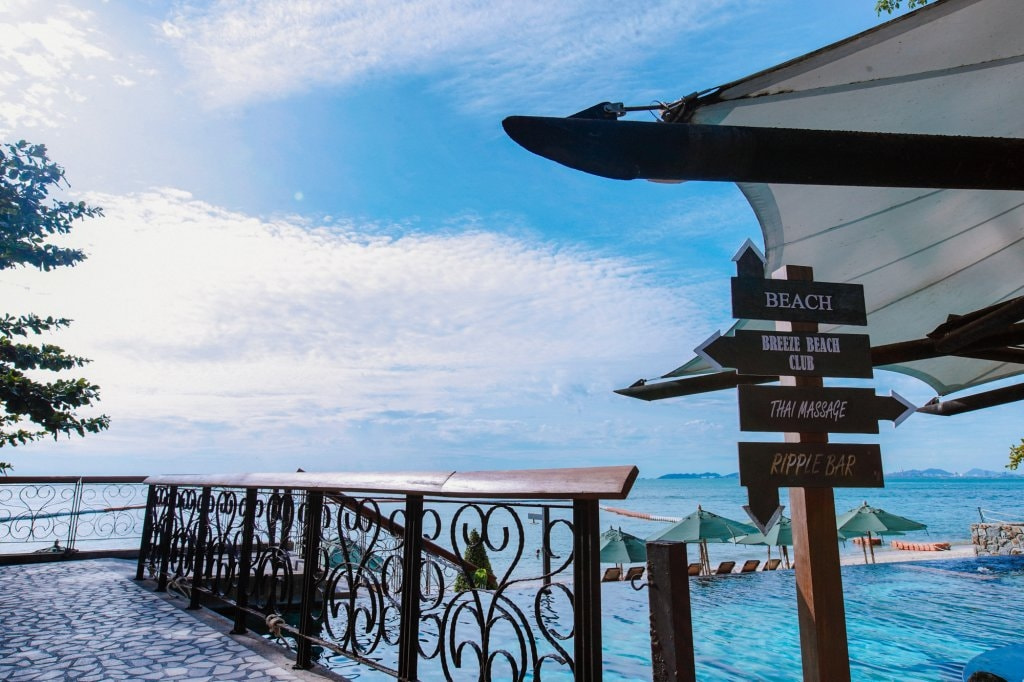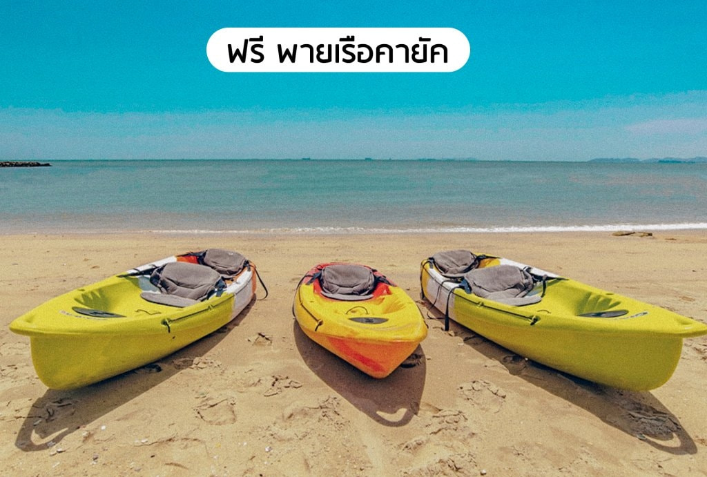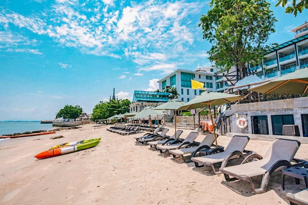 รีสอร์ทพัทยาติดทะเลชายหาดส่วนตัว บรรยากาศดีมากจ้า สะอาดปลอดภัยได้มาคราฐาน รับรองโดยมาตรฐาน SHA และ Safe Travels โรงแรมสวยอลังการ นั่งชิลรับลมทะเลได้เลย ชายหาดส่วนตัวนั่งเล่นได้เล่น มีเรือคายัคให้พายฟรีด้วยนะ