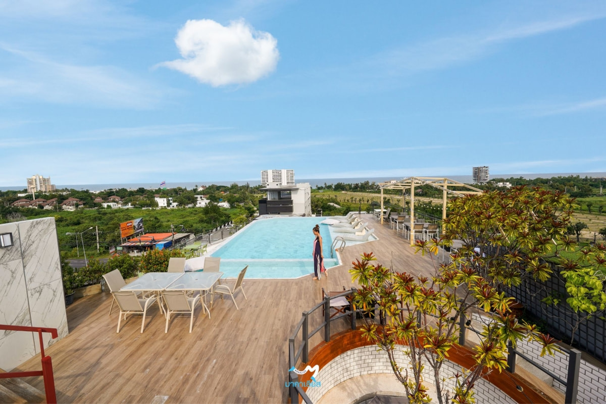 Whale Hua Hin Hotel ที่พักหัวหินสุดชิค มีที่นั่งพักผ่อนบนดาดฟ้า ไว้รับลมชมวิวทะเลพร้อมสระว่ายน้ำสุดเก๋ ถ่ายรูปเล่นเพลินๆ ก็สวยไม่เบาหามุมปังๆ โพสต์ท่าจิบเครื่องดื่มเก๋ ๆ ได้รูปลงโซเชียลแน่นอน และได้รับฟรี Welcome Drink มาจิบเพิ่มความสดชืนอีกด้วย