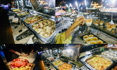 ขึ้นไปจะพบกับบุฟเฟต์ซีฟู้ดจัดเต็มมากกุ้งเเม่น้ำ หอยเเมลงภู่นิวซีแลนด์ เเซลมอนซาชิมิสดๆน้ำจิ้มคือโครตดีย์ เเละอาหารนานาชาติจัดเต็มไม่อั้น ยังไม่หมดเเค่นี้ ยังมีการเเสดงดนตรีสดตลอดเวลาที่ล่องเรือ 2 ชม.เต็ม เเละมีบริการเซอร์ไพรส์เค้กวันเกิดสำหรับคนที่เกิดเดือนนั้นๆ อาหารอร่อย วิวสวย บรรยากาศดีทั้งหมดนี้จัดเต็มในวอเชอร์มาคาเลียเพียงราคาราคาหลักร้อย ราคานี้สำหรับลูกค้ามาคาเลียสเท่านั้น!